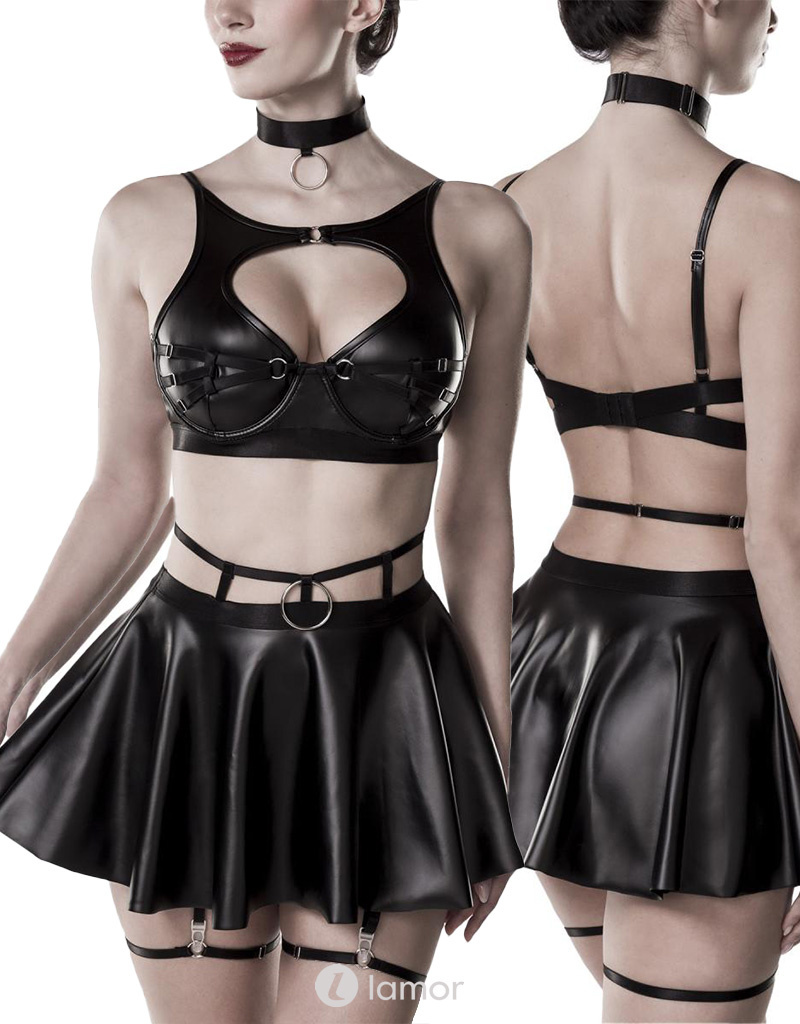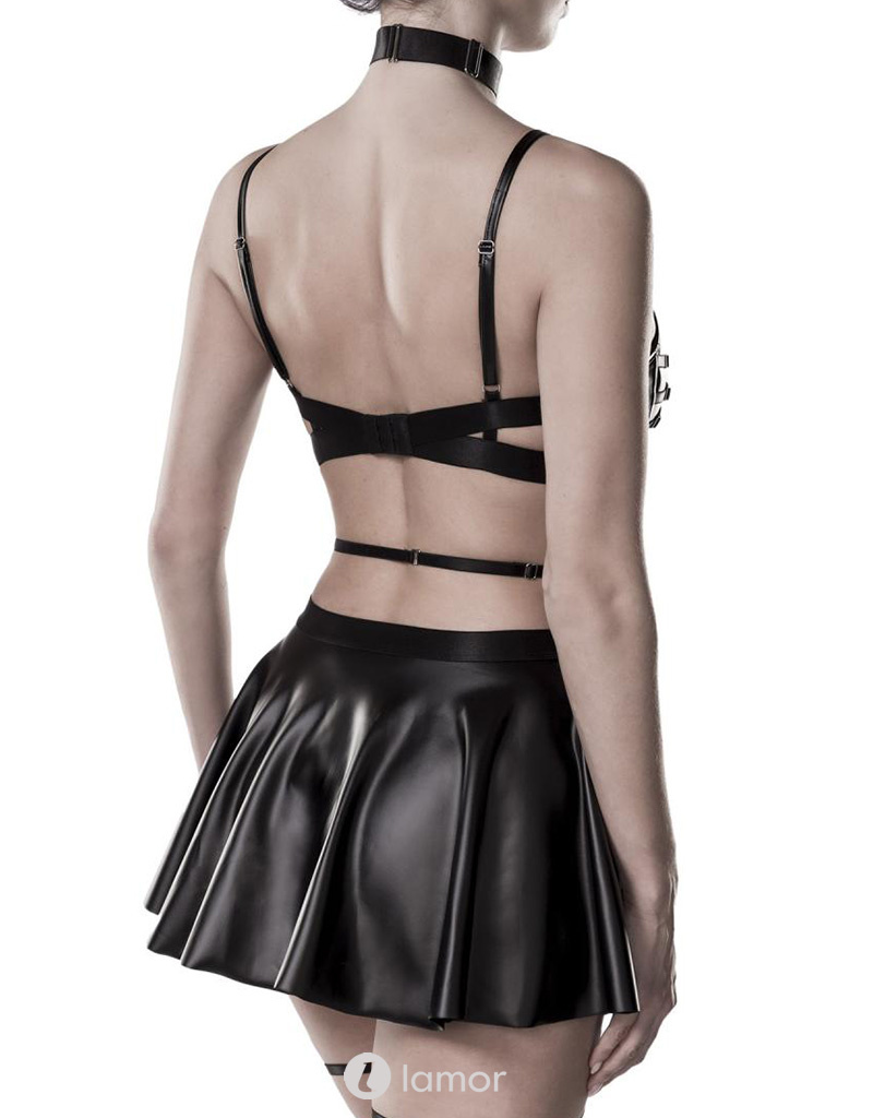 • Set bestaat uit: Beha top, Rokje met bretels, Choker & String