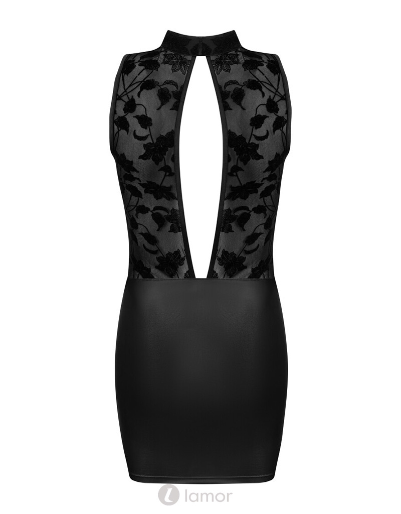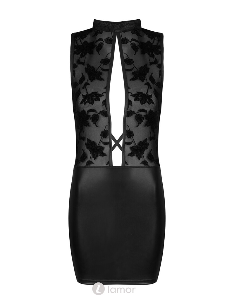 Zwarte mini jurkje Cameron & String in latexachtig materiaal