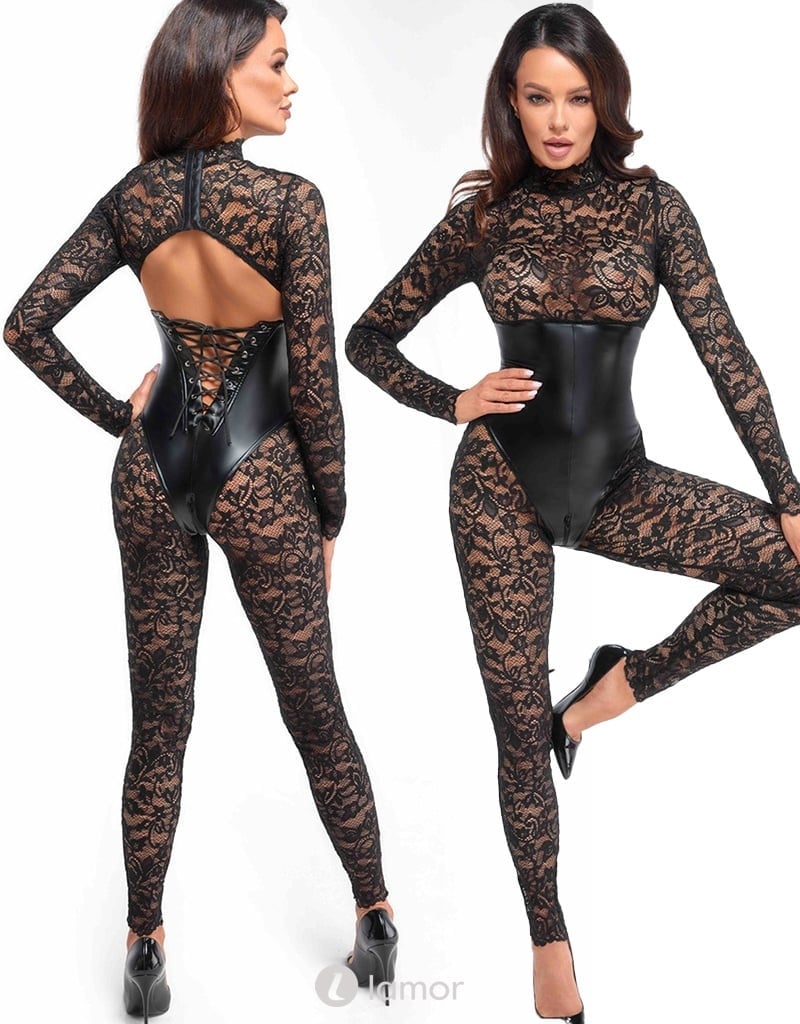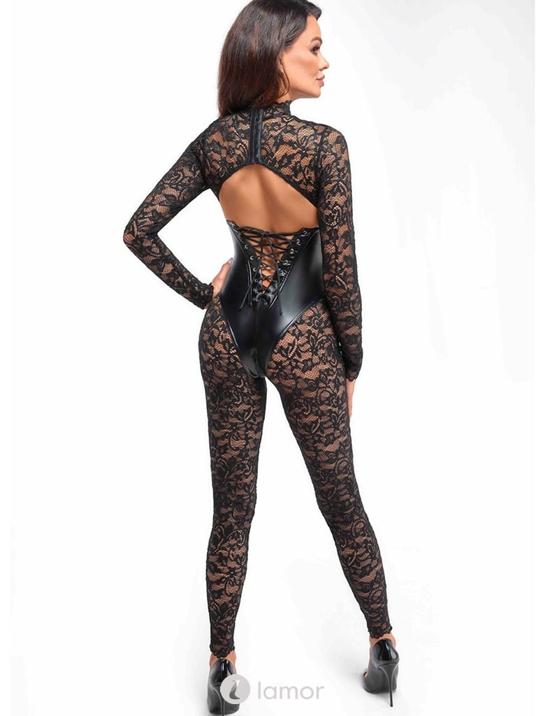 Catsuit met onderborstkorset met bloemen print van Noir Handmade Libido