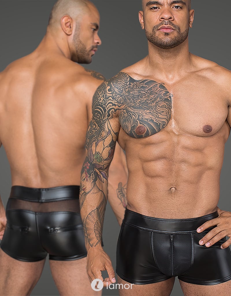 Deze broek heeft een elastische power matt look en is voorzien van dubbele mesh inzetstukken aan de voor- en achterkant, wat pure erotiek uitstraalt. Met name de mesh-hoes op de jockstrap zal zeker behagen en wellustige fantasieën opwekken. Decoratieve ritsen op de billen zorgen ook voor brutale accenten die om aandacht schreeuwen. Ten slotte zorgt de ritssluiting over de jockstrap voor snel plezier wanneer de wens opkomt.