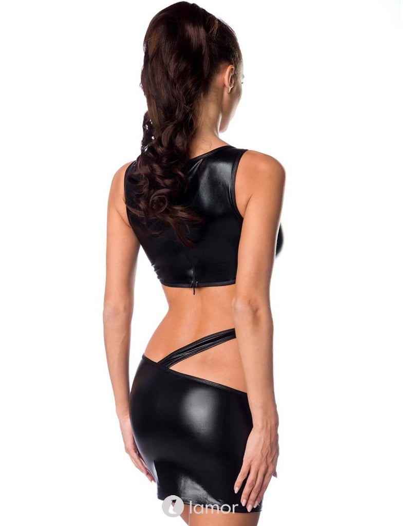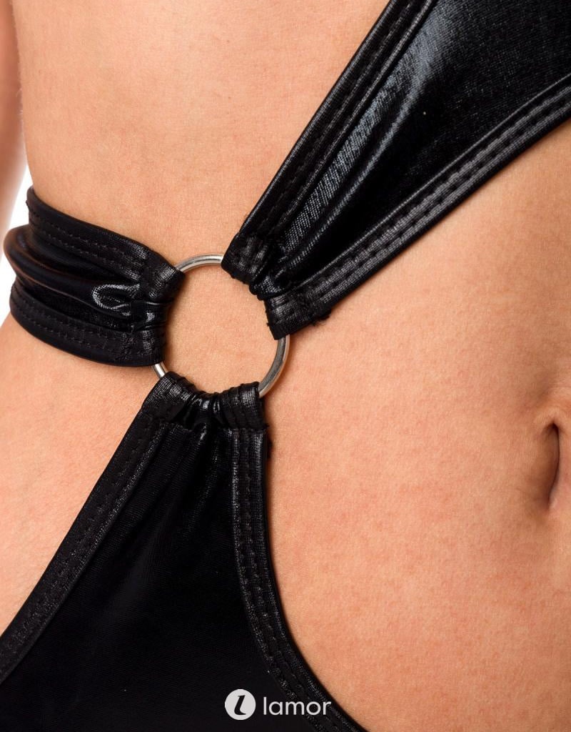 Chique zwart clubwear jurkje met met royale uitsparingen en ringen van het merk Saresia.