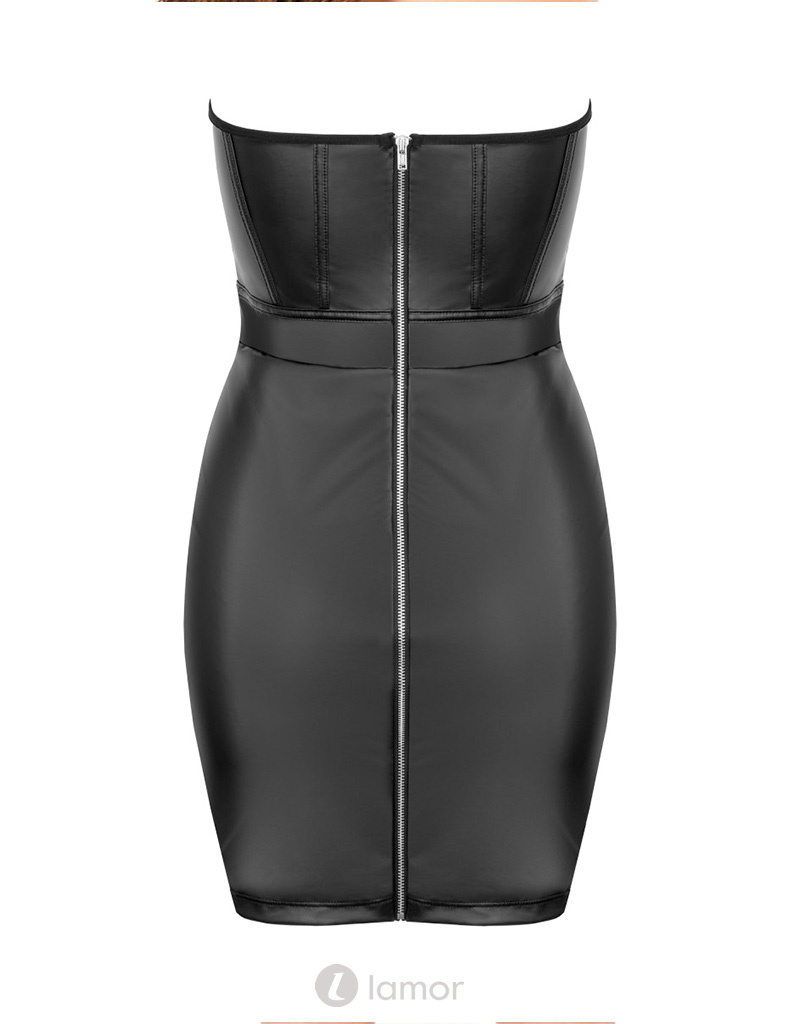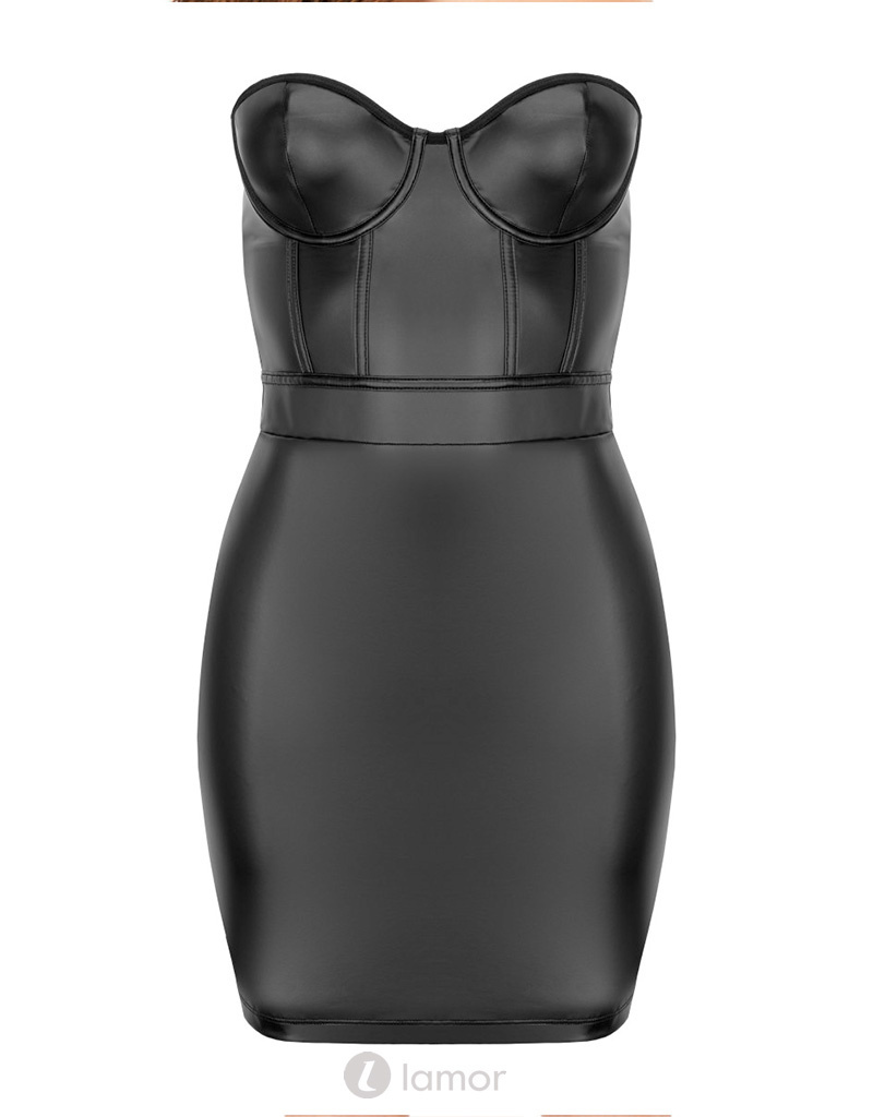 Sexy zwart strapless jurk in latexlook, Blackelia van het merk Kotek