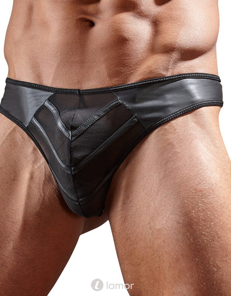 Sexy heren string van lederlook materiaal met netstof ,Svenjoyment Underwear