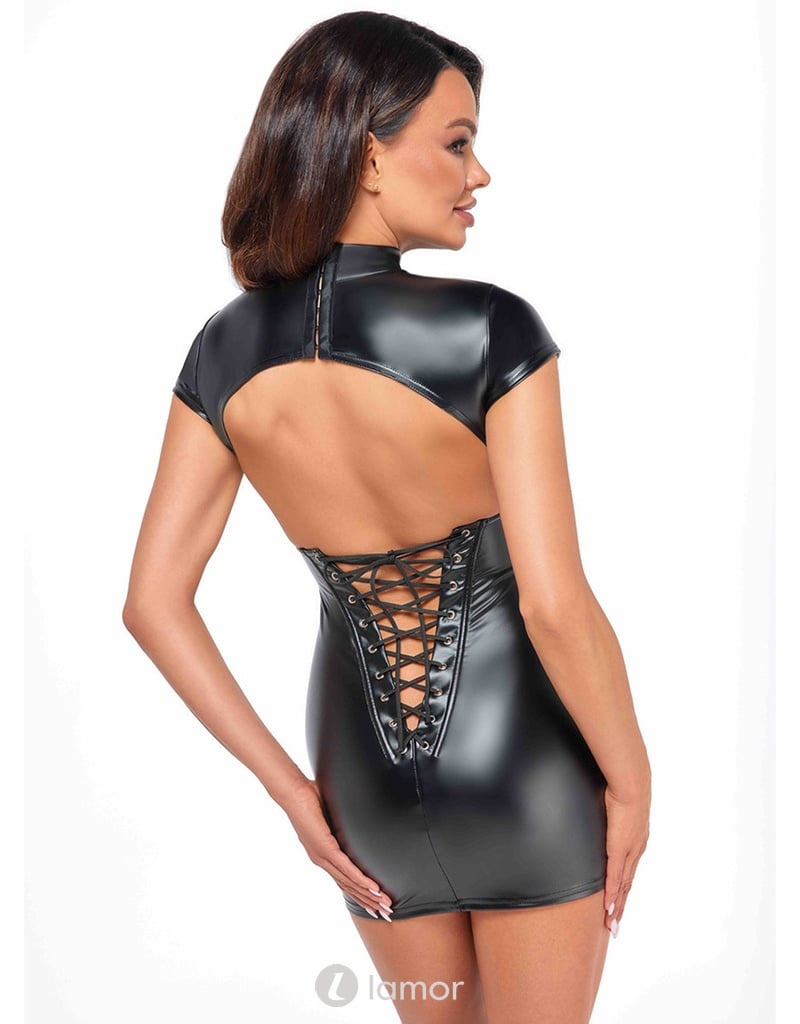 Wetlook mini jurk met blote rug Noir Handmade uit de collectie Libido