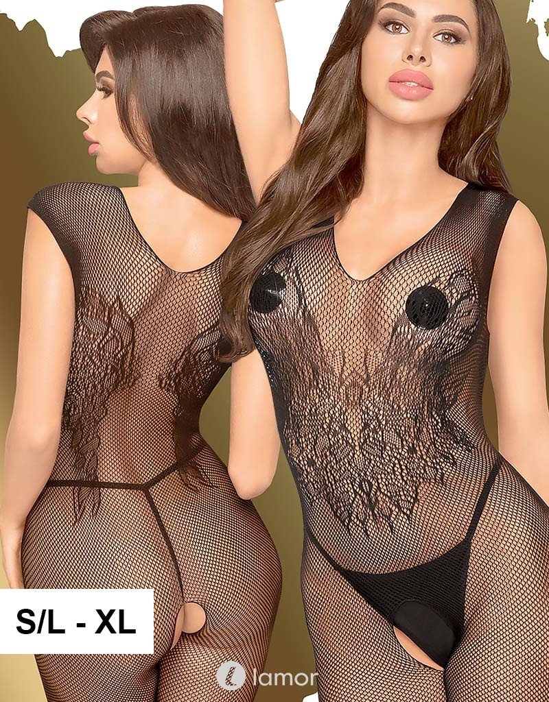 Een bodystocking van mesh met een nauw aansluitende snit, zorgt voor een wellustige blikken op de prachtige rondingen! Het patroon wordt onderbroken door een sierpatroon die de borst en je sleutelbeenderen verleidelijk accentueren. De V-hals verfraait de halslijn en de brede bandjes zorgen voor een optimale pasvorm.