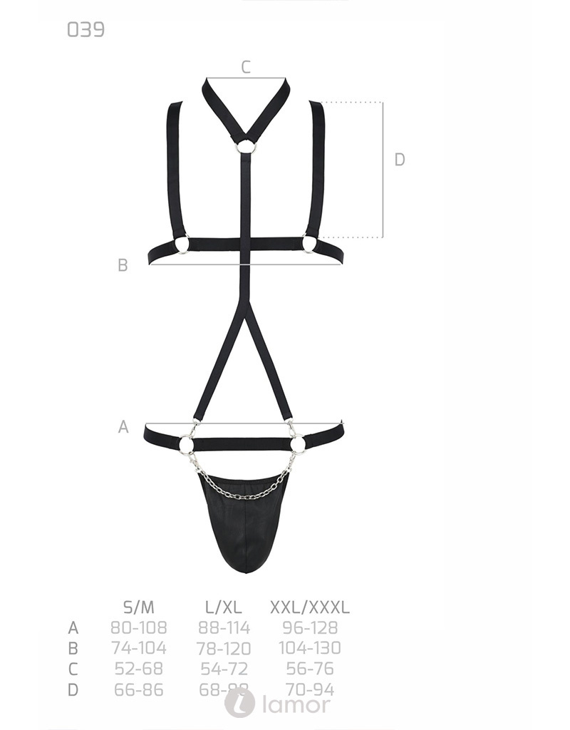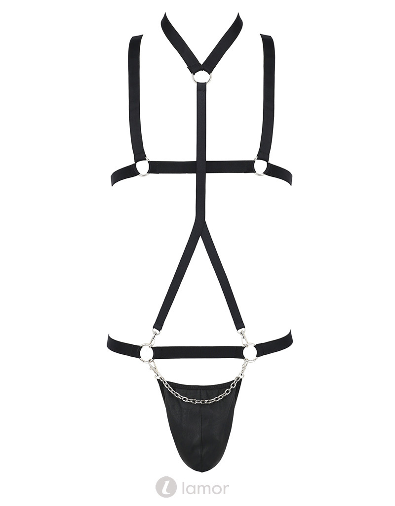 Sexy heren Harnas set van lederlook metalen elementen van Passion Menswear
