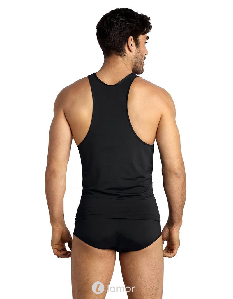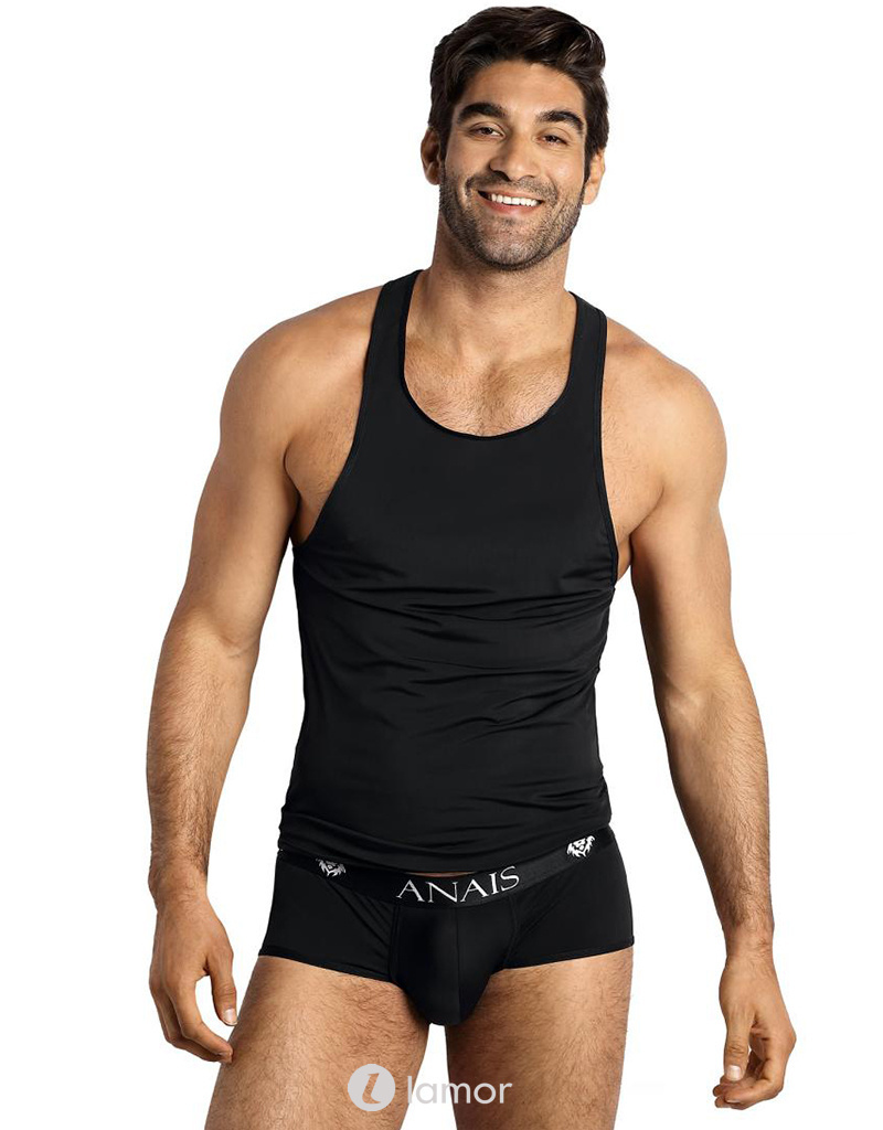 Zwarte tanktop van licht glanzend ondoorzichtig materiaal materiaal van het merk Anais men